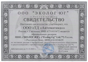 Свидетельство официального дилера ООО "Эколог-Юг"